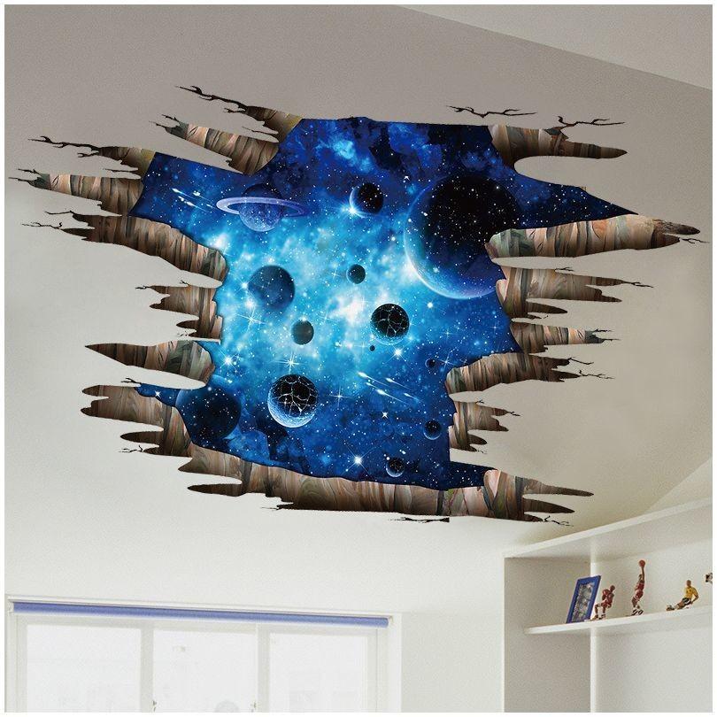 ウォールステッカー 壁紙シール 3d 立体的 トリックアート だまし絵 宇宙 星 惑星 床 天井 ルームデコレーション ウォールデコレーション 壁面装 プラスナオ Paypayモール店 通販 Paypayモール